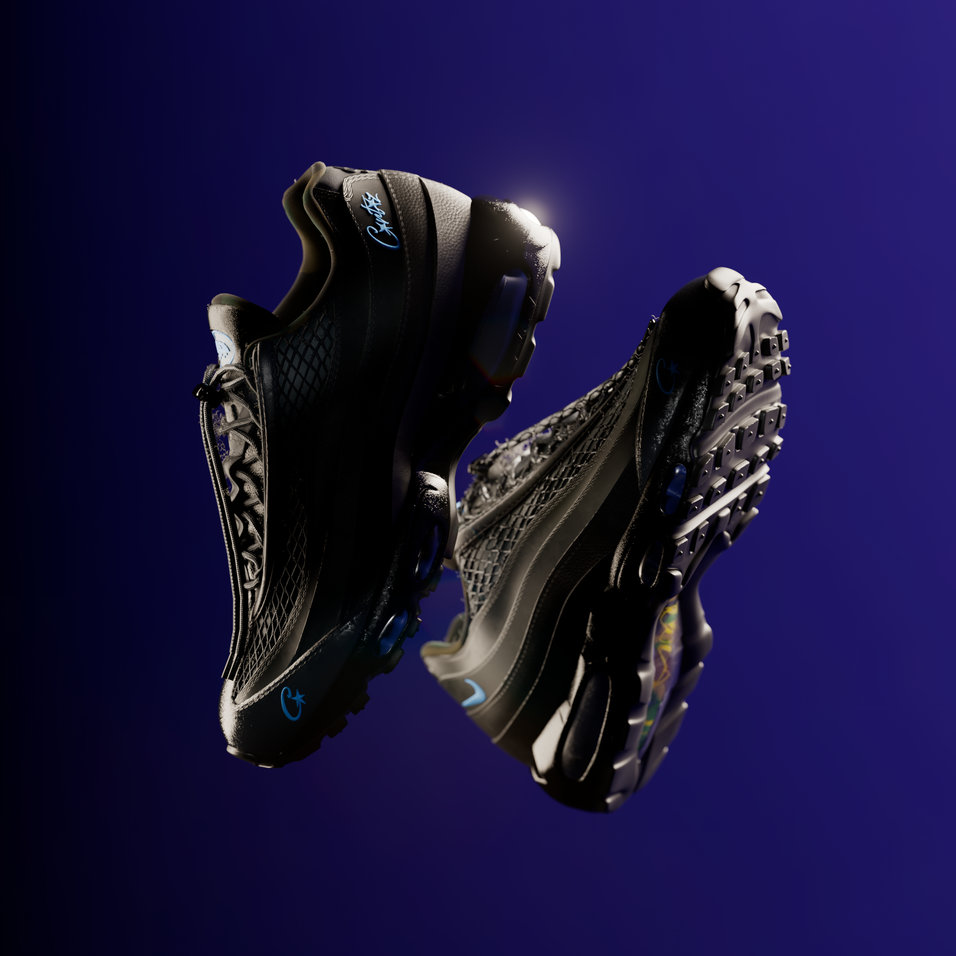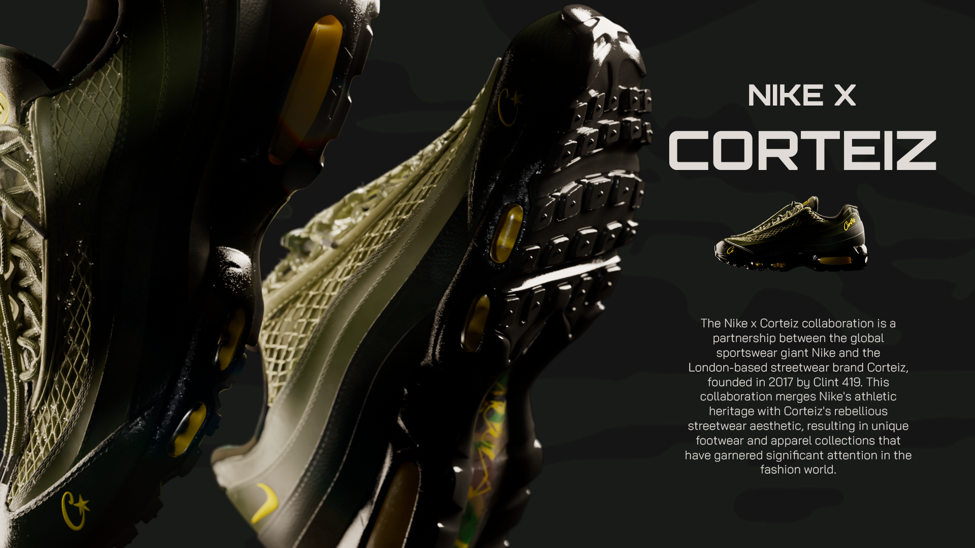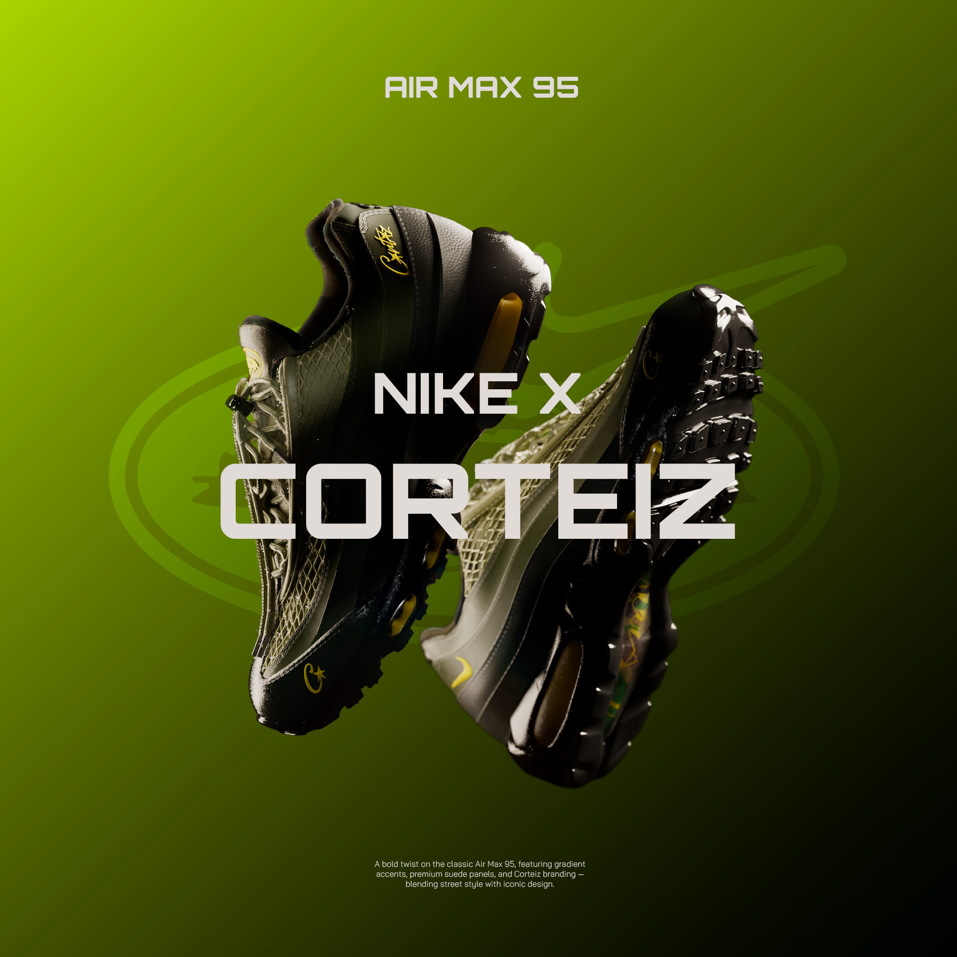 This project showcases a high-quality 3D visualization of the Nike Air Max x Corteiz collaboration, blending streetwear aesthetics with iconic sneaker design. The model highlights the shoe's signature details, including textured materials, bold colorways, and dynamic lighting to emphasize its unique character. The project aims to capture the fusion of performance and style, bringing the sneaker to life through realistic rendering and attention to detail.